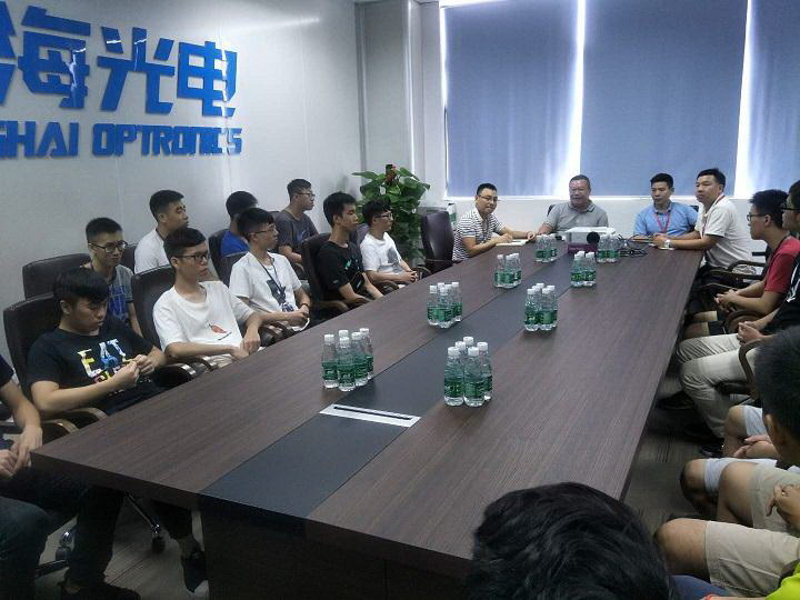 2018年8月1日公司領導組織全體佛山科學技術學院實習學生進行座談會,會議由錢副總主持,參會人員有副廠長湯寧寧、生產部副經理余享舟、人力行政部經理何永堯以及到場全部實習學生。 會議中錢副總代表公司向全體實習學生表示熱烈歡迎,並就公司情況作詳細說明,隨後聽取學生的訴求,同時指示各相關部門做好技術培訓和後勤保障工作。會議在和諧氣氛中結束。