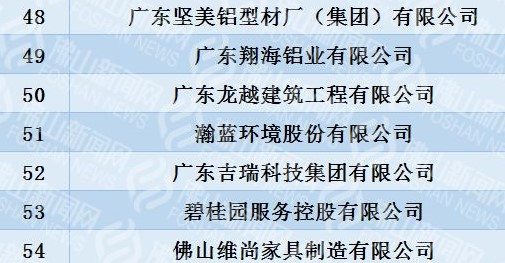 12月17日,佛山市企業聯合會、佛山市企業家協會首次發布佛山企業100強榜單。該榜單以2018年企業營業收入為基本標準,綜合考慮企業經營指標而得出。榜單的上榜門檻是27億元,百強企業總營收達到13463.6億元。 九游会(J9)鋁業位居49名。 原文來源 搜狐新聞