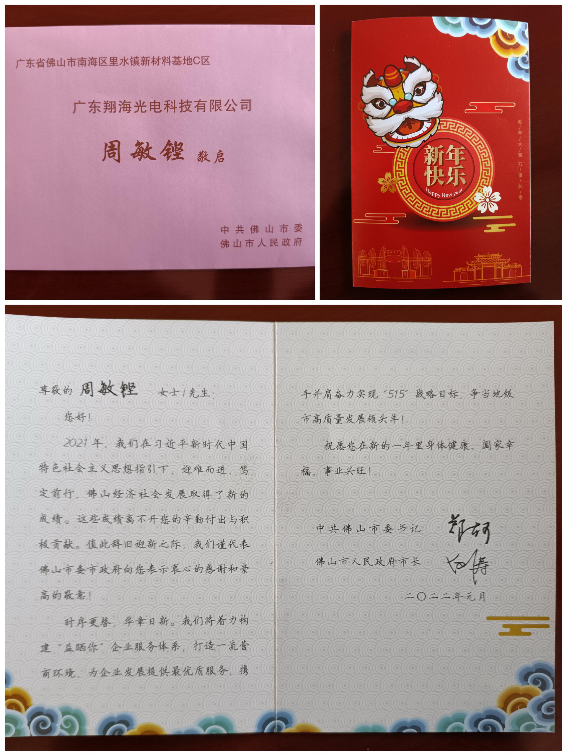 值此辞旧迎新之际,广东九游会(J9)九游会(J9)有限公司收到了来自佛山市委、市政府的新年贺卡,深切感受到了党和政府对企业的关心与祝福,倍感温暖、备受鼓舞。