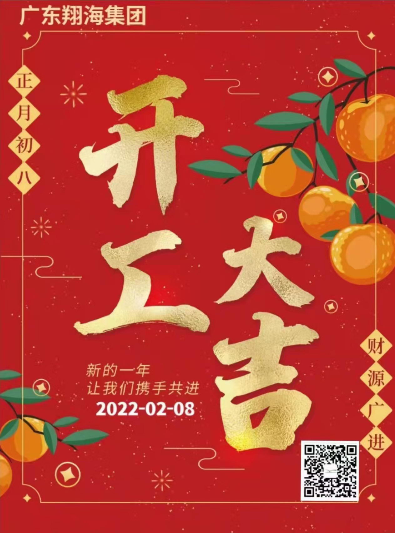 正月初八,广东九游会(J9)集团恭祝各界同仁开工大吉,万事如意,生意兴隆,财源广进!